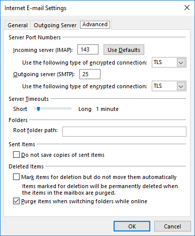 8. Under the "Outgoing Server" section, check the "My outgoing server (SMTP) requires authentication" checkbox, and make sure "Use same settings as my incoming mail server" is selected.9. Navigate to the Advanced tab and make sure you have the following selected.